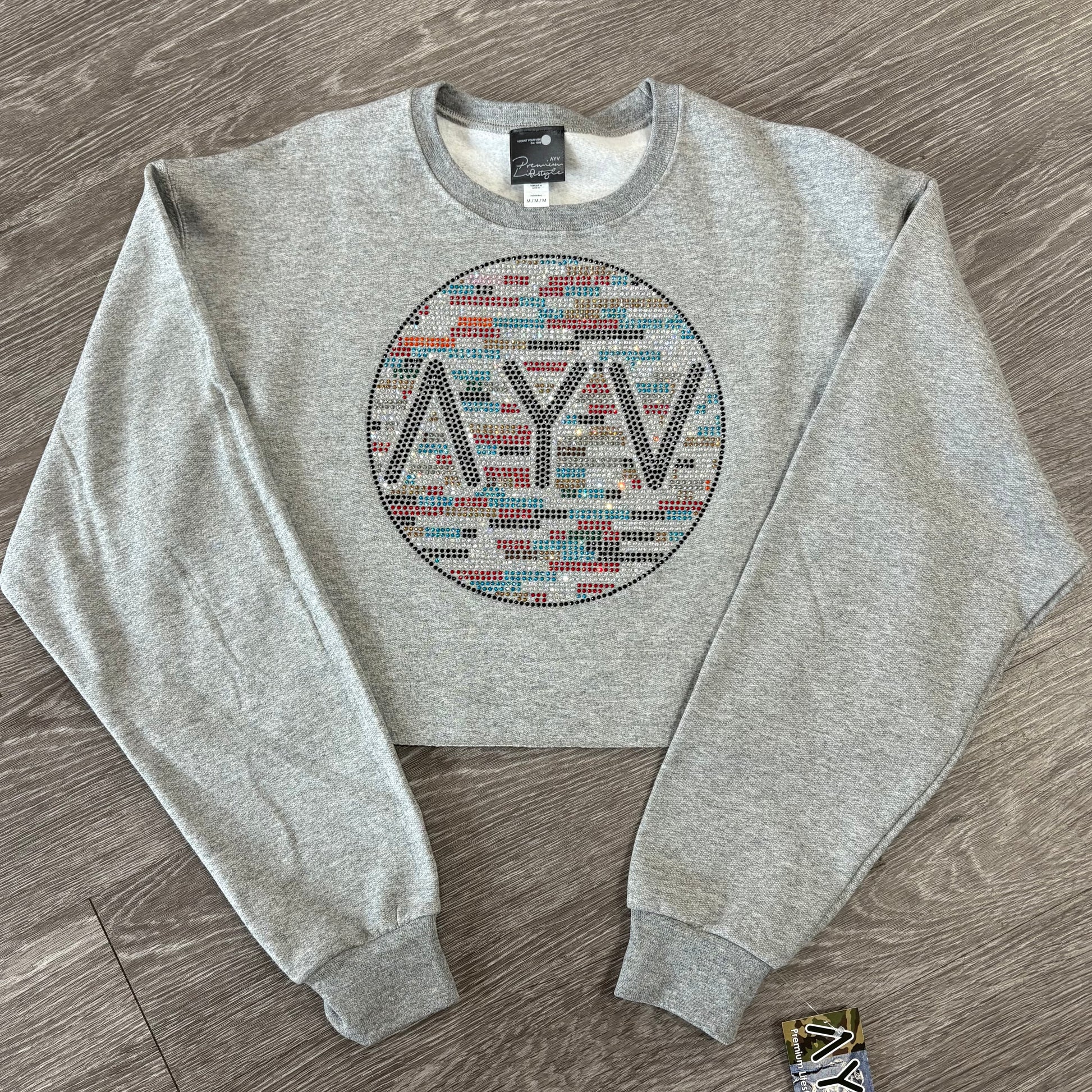 “International Wave” Crystalized Cropped Sweatshirt
